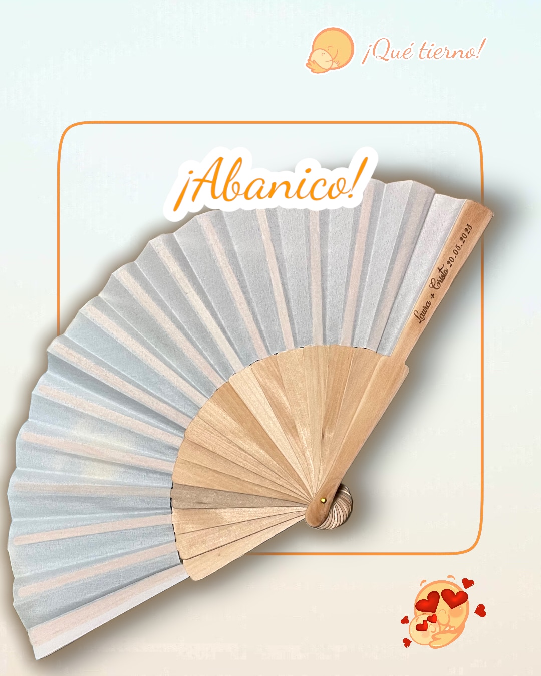 El diseño del abanico es totalmente personalizado, cuéntanos tu idea, dinos la tipografía que quieres usar, danos el máximo de detalles posibles, ponte en contacto y dinos cuál es tu idea.