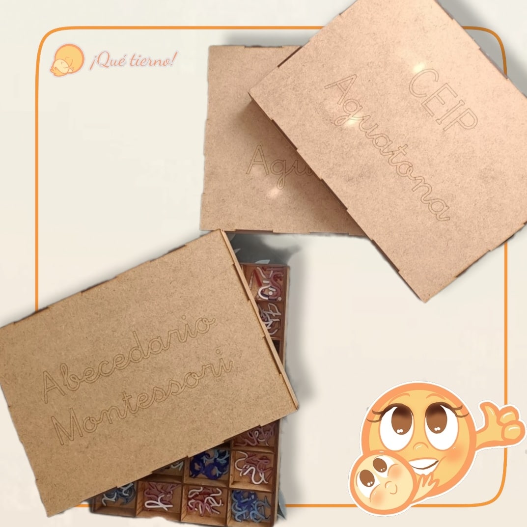 Se presenta en una caja compartimentada de madera que puedes personalizar con el nombre de tus peques o escuela.