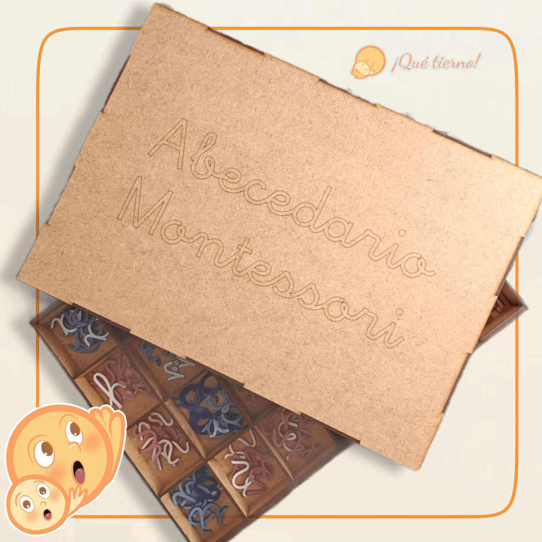 Se presenta en una caja compartimentada de madera que puedes personalizar con el nombre de tus peques o el texto que prefieras.