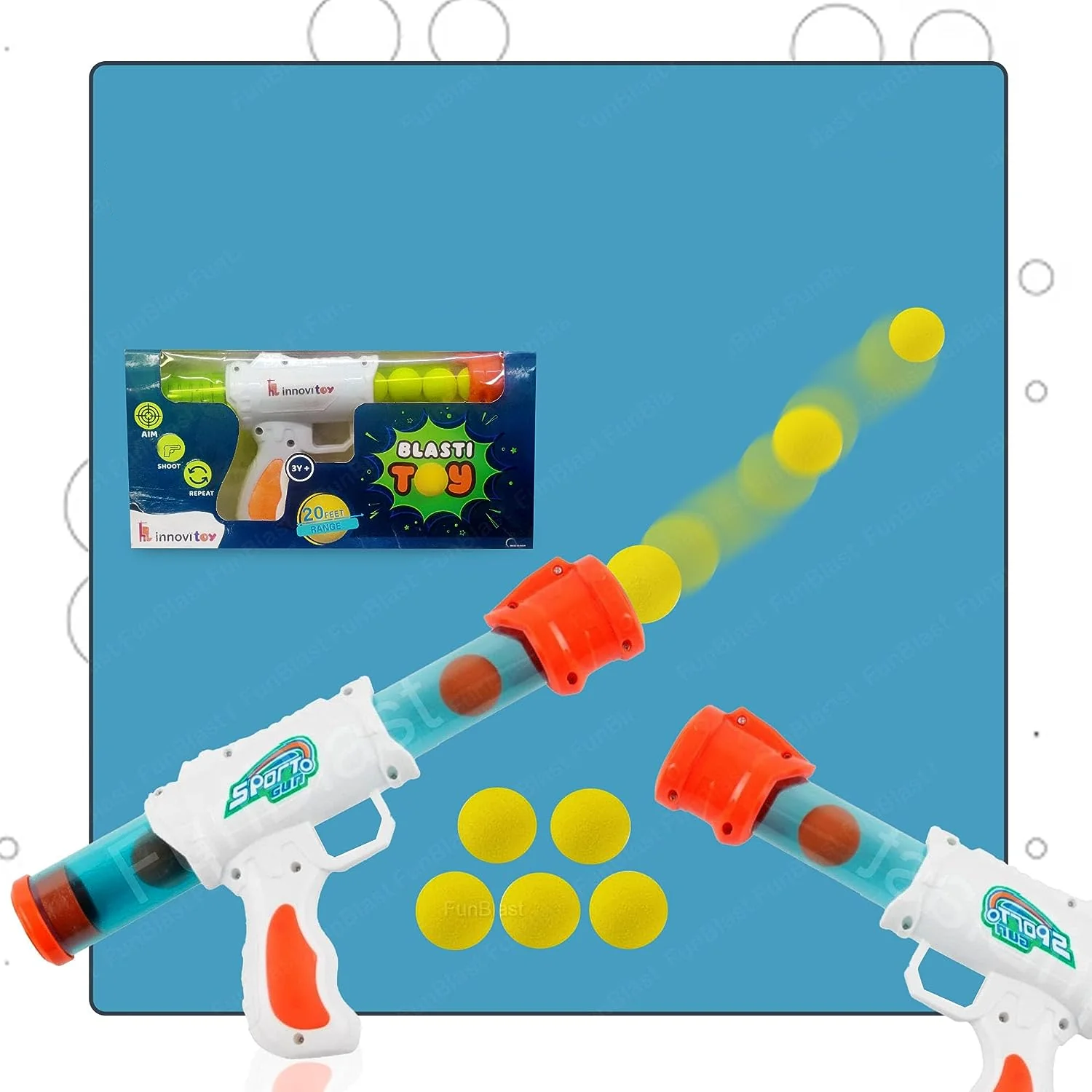 ¡Descubre el juego de disparos definitivo con el AirBlaster! Esta pistola de aire comprimido ofrece horas de diversión activa y es completamente segura para los niños gracias a las bolas de espuma suaves. ¡Perfecta para interiores y exteriores!