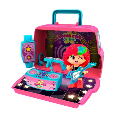 Incluye una figura exclusiva de cantante pop con todo el estilo y actitud de una verdadera diva. Después del show, guarda todos los accesorios dentro del autobús y prepárate para llevar el espectáculo a otra ciudad.