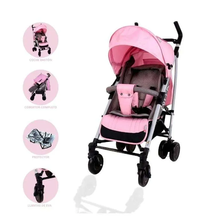 Este coche bastón Nitro de BABYGO resulta muy ligero de transportar y tiene todo lo necesario para hacer perfectos los viajes, tanto por la canastilla para objetos que lleva integrada como por el diseño y el sistema de una posición que permite que tu bebé; viaje cómodamente y se divierta.