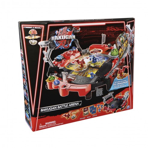 Crea un entorno envidiable para librar batallas épicas con el conjunto personalizable Bakugan Battle Arena. Construye tu Battle Arena con banderas de los distintos clanes y Sparring Totems para crear obstáculos fascinantes. Desliza, gira y golpea a tu Bakugan sobre diferentes obstáculos con ruletas y paletas para jugar de una forma muy diferente. Guarda, lanza y exhibe tu Bakugan en la base y graba toda la acción cómodamente con el soporte para el móvil incluido.