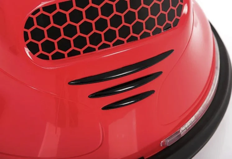 Funciona con electricidad y cuenta con una carcasa de plástico duradera que puede resistir los golpes y colisiones que ocurren al jugar con autos chocadores.