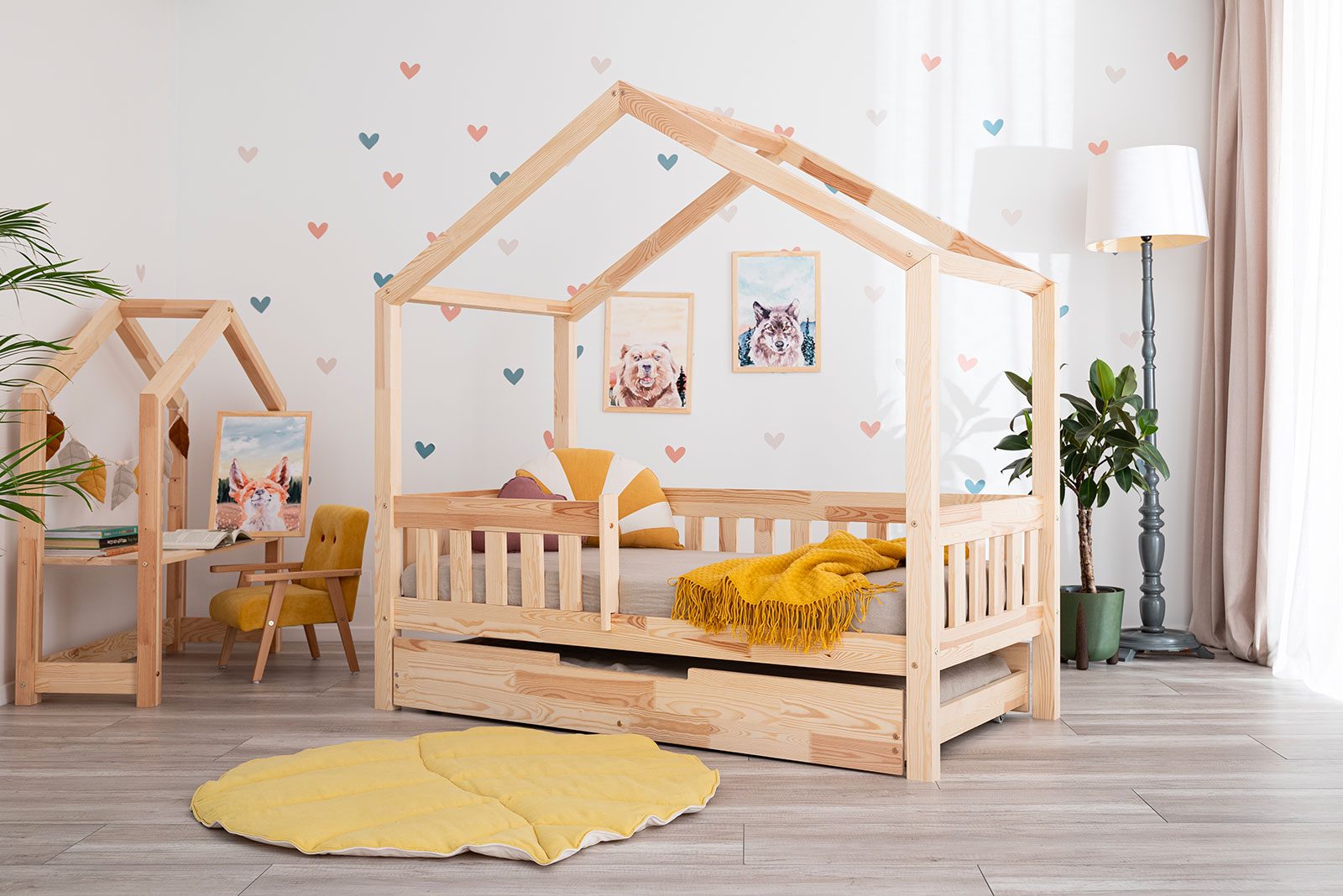 A continuación, se aplica la capa final de Tikkurila Akvi TOP DS25, que proporciona a la cama un color bonito y uniforme y una protección duradera.[/vc_column_text][/vc_column_inner][/vc_row_inner][vc_column_text]Cajón con función de cama (opción adicional): es un cajón sin fondo macizo. El fondo del cajón está compuesto por un somier de láminas planas. El cajón puede utilizarse como un espacio para dormir adicional o para guardar la ropa de cama, etc. El cajón cuenta con ruedas. La altura del cajón es de 19 cm.