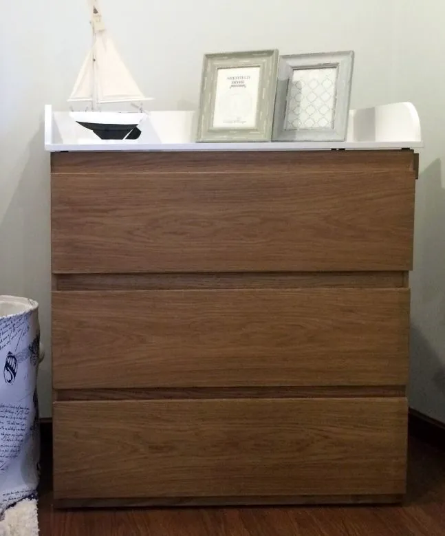 Nuestro cambiador para bebe en roble tiene tres cajones, en los cuales puedes organizar la ropa de tu bebé. La bandeja lateral entra y sale para tener a la mano las cosas que necesitas para cambiarlo. Puedes escoger el acabado de la madera y el color de la pintura.