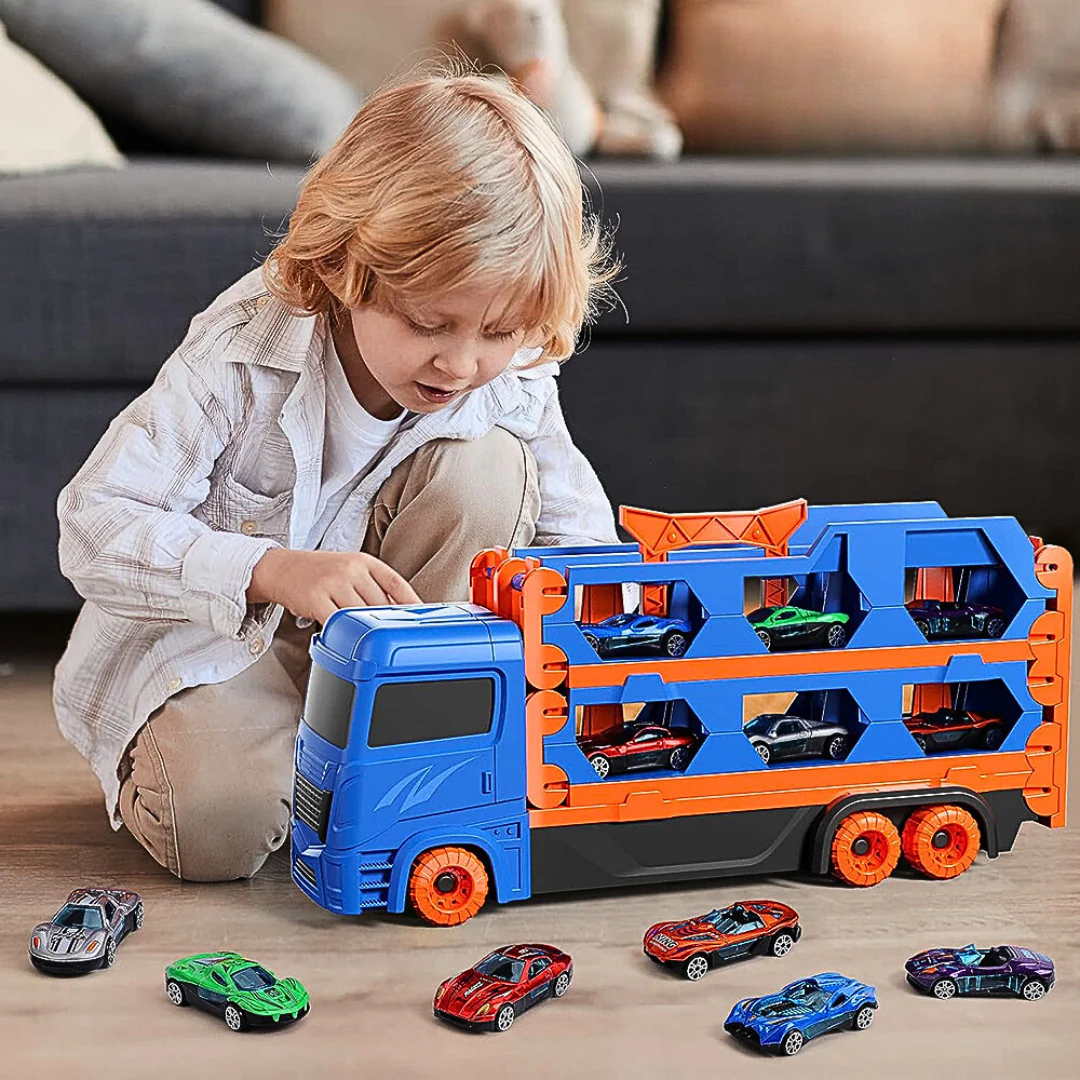 Con 9 piezas diferentes, este set ofrece posibilidades infinitas. Ya sea jugando con el camión como caja de almacenamiento o haciendo que los coches de carreras corran por el circuito variado, este juguete mantiene a tu hijo entretenido y divertido. ¡Es ideal tanto para niños como para niñas que aman los vehículos y la aventura!