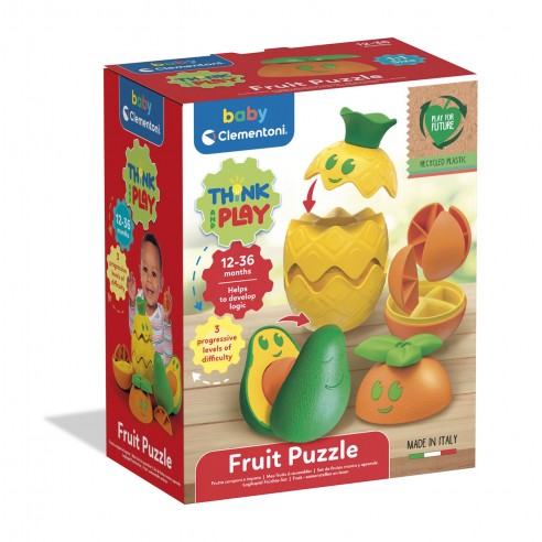 La Cesta de Frutas 17512 Baby Clementoni es un juguete sensorial y educativo pensado para estimular la lógica, la motricidad y la curiosidad de los más pequeños. Incluye tres frutas de plástico reciclado: