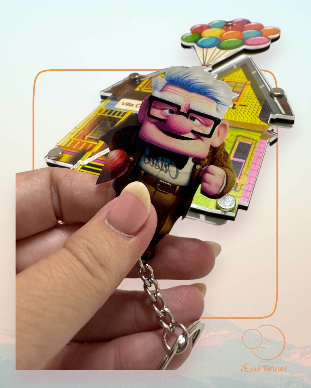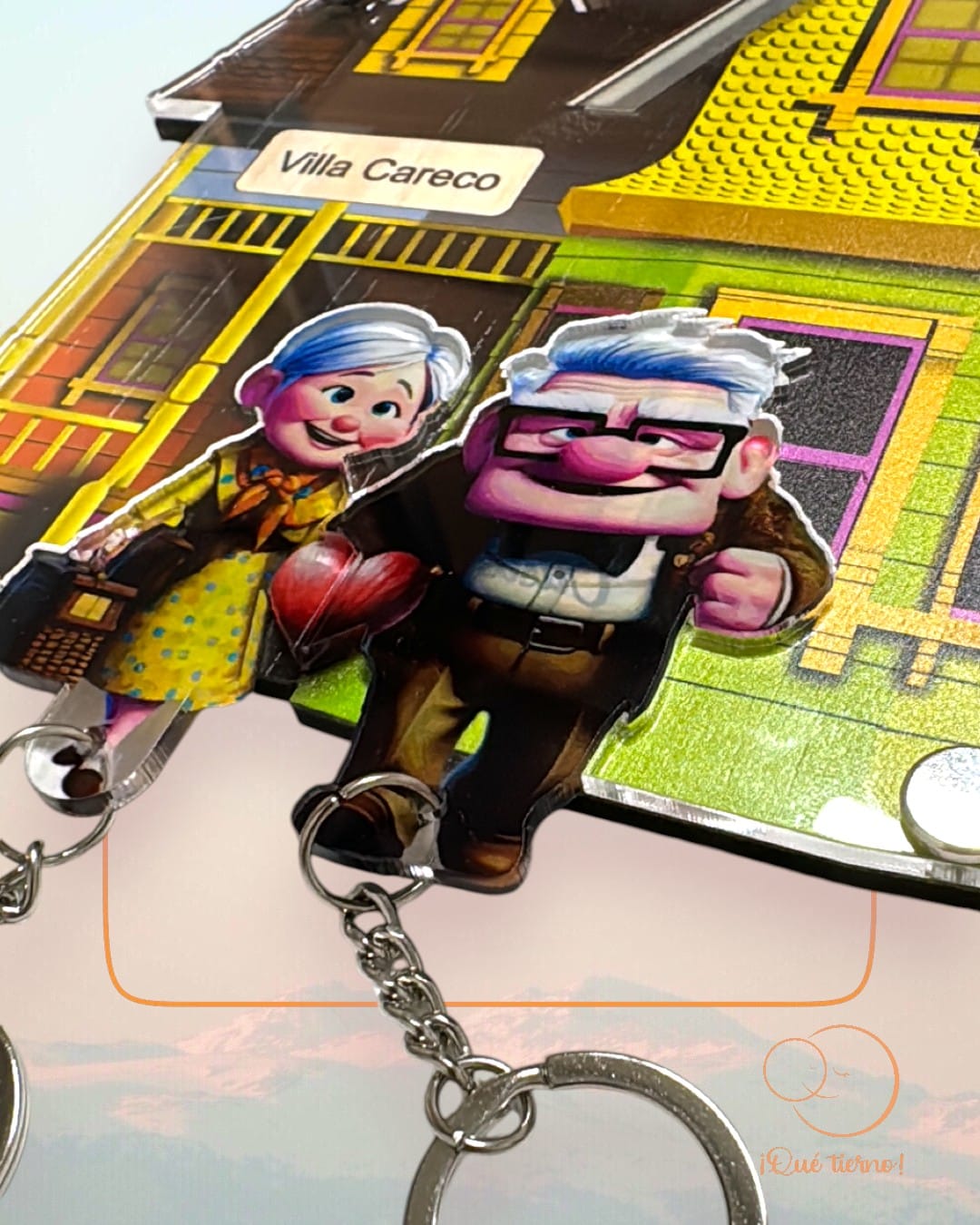 Incluye dos llaveros personalizados incrustados en la estructura, Ellie y Carl y se pueden añadir dos más, Russell y Dug