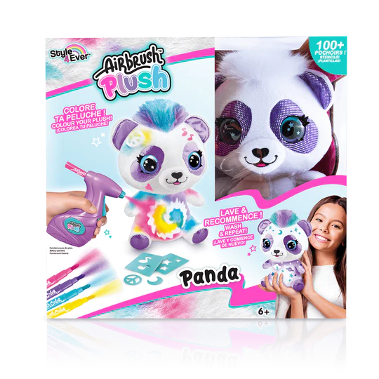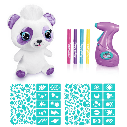 UNA ACTIVIDAD DIVERTIDA: Los niños se divertirán coloreando su peluche Panda con los 4 rotuladores, el aerógrafo y las plantillas. ¡Podrán crear su propio estilo!
