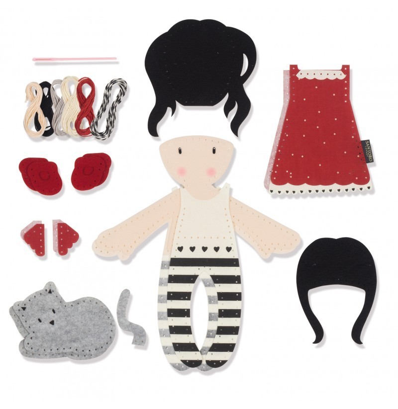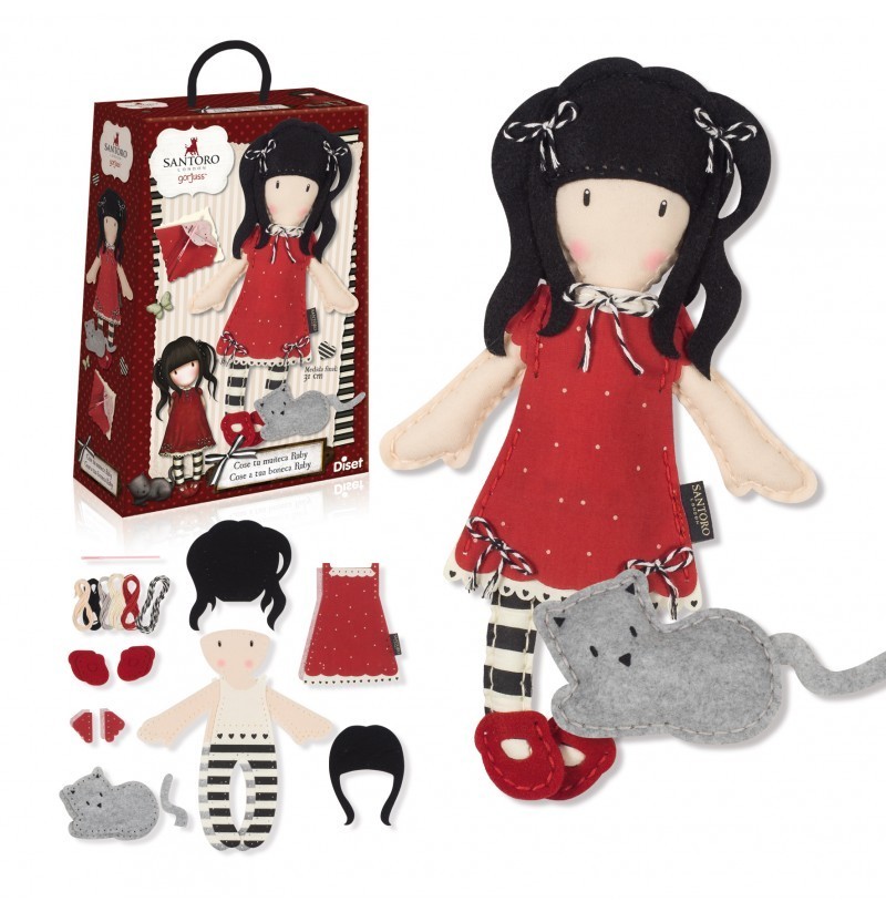 Incluye todo lo necesario para coser tu muñeca Gorjuss fieltro, tela, relleno, hilos y aguja. Instrucciones a color
