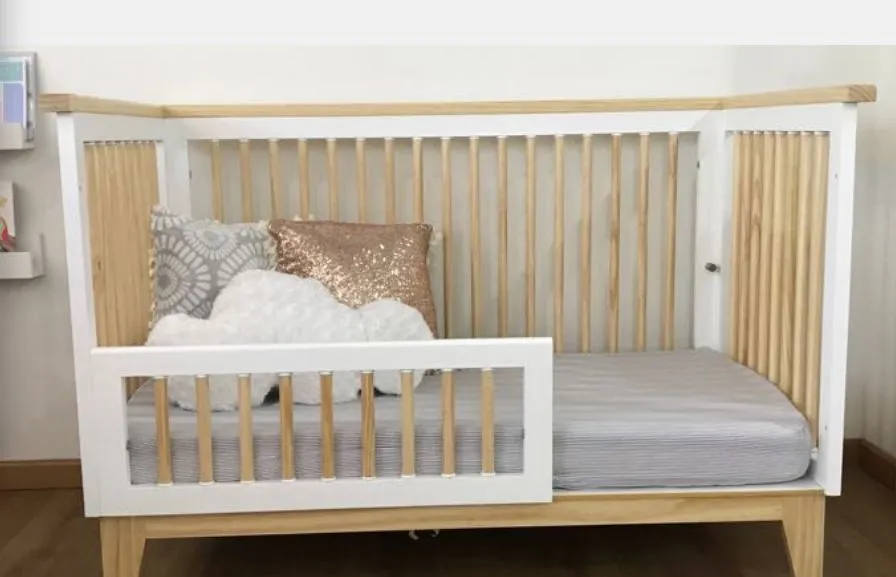Nuestra cuna de madera creciendo juntos tiene varios usos cuando es una cuna la puedes usar con diferentes niveles o altura después la puedes usar como cama pequeña con baranda o por último puedes quitar la baranda al frente y dejarlo como un sofá para sentarse, la puedes hacer en 3 diferentes maderas, pino, roble ó cedro y en diferentes acabados.