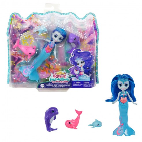 Este conjunto familiar de Enchantimals de la colección Ocean Kingdom incluye a la muñeca Dorinda Dolphin (15cm) y 3 amigos delfines. A las pequeñas les encantarán los fantásticos detalles de la muñeca Dorinda Dolphin. Incluye una divertida sorpresa, ¡quítale la cola a la muñeca para descubrir sus piernas! Las figuras de delfines tienen acabados brillantes y cada una es adorable a su manera. A las más pequeñas les encantará jugar con esta familia tan especial de Enchantimals. Y con los 4 personajes, ¡las pequeñas se divertirán todavía más! Los colores y la decoración pueden variar.