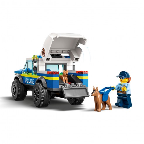 A los niños y los fans de los canes a partir de 5 años les encantará el set de juguetes Lego City Entrenamiento Móvil para Perros Policía (60369). Lleno de inspiradores elementos para jugar con imaginación, contiene un todoterreno canino, un remolque y 3 obstáculos de entrenamiento para perros: un balancín, una valla de salto y unas setas de equilibrio. Incorpora al juego a los agentes de policía y las figuras del perro y el cachorro, ¡y que empiece la diversión!