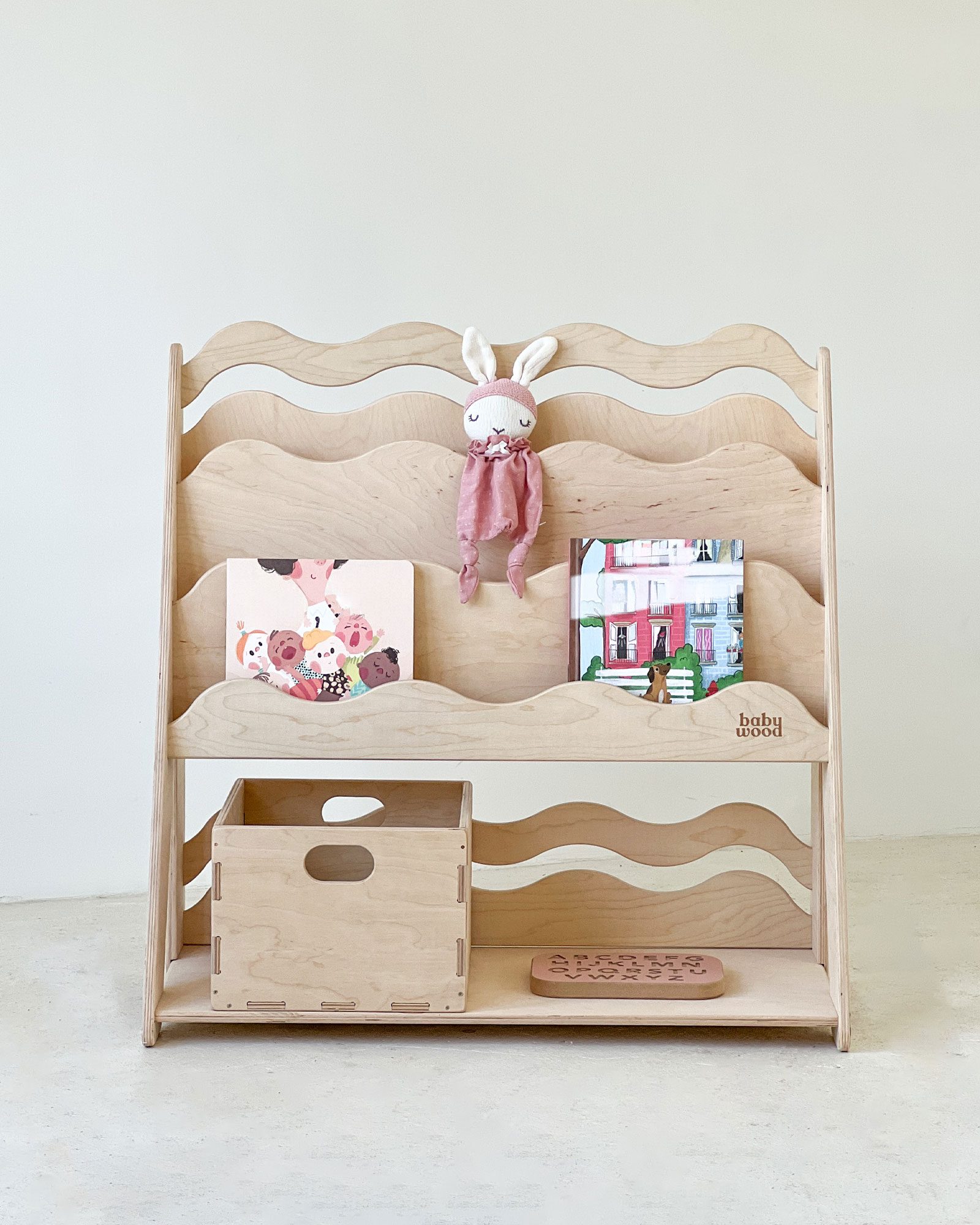 [vc_row][vc_column][vc_empty_space][/vc_column][/vc_row][vc_row][vc_column][vc_column_text]La estantería para libros y juguetes WAVE M fomenta la independencia de los niños y les ayuda a mantener el orden en su habitación. Su diseño abierto deja los libros y juguetes a la vista, animándolos a elegir en cada momento qué quieren leer o con qué desean jugar. Fabricada con materiales naturales y acabada con esmero, es un complemento duradero y seguro para cualquier habitación infantil.[/vc_column_text][/vc_column][/vc_row][vc_row][vc_column][vc_column_text]