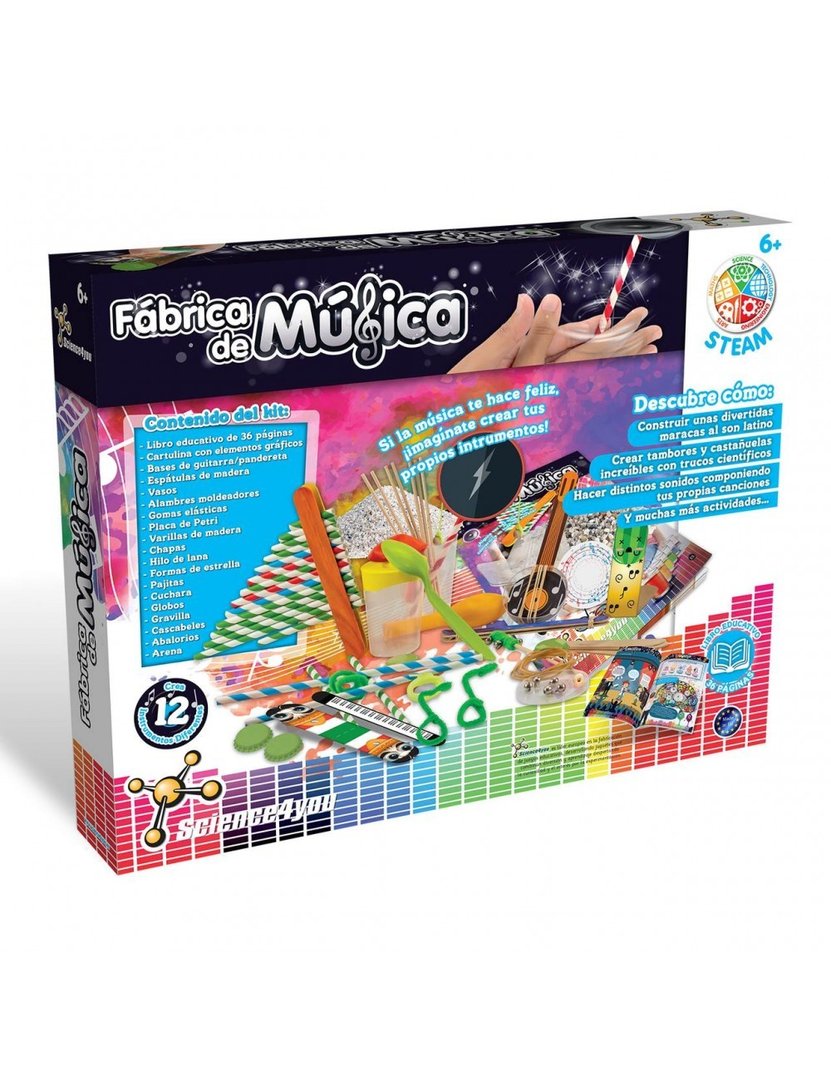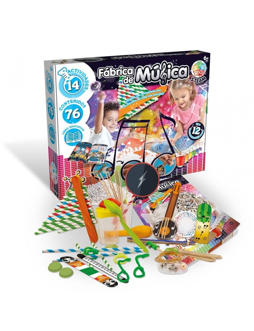 Con la fábrica de música, el pequeño científico va a aprender cómo crear sus propios instrumentos.Con todos los instrumentales incluidos en este kit, los niños y niñas podrán crear instrumentos, montar una banda con sus amigos, darse cuenta de las diferencias entre los más diversos tipos de instrumentos y luego sí, darse cuenta de cómo la ciencia ayuda a las bandas de música a ser un éxito.