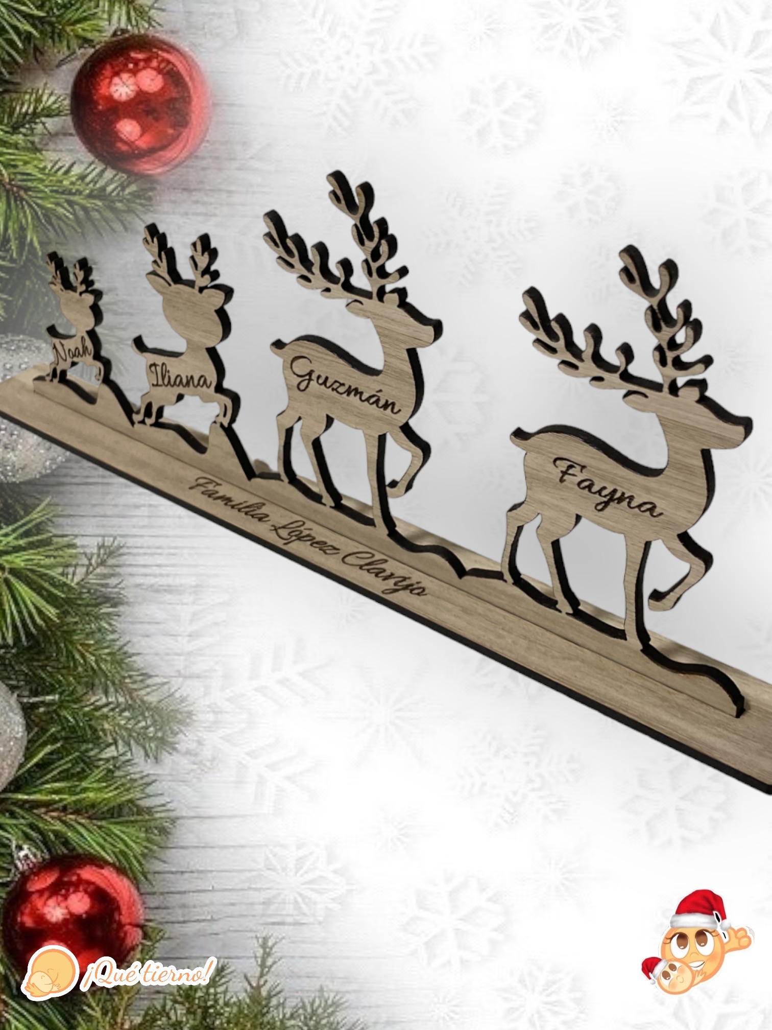 Puedes personalizarlo con los miembros de tu familia o quienes quieren que formen parte de esta curiosa familia de renos.