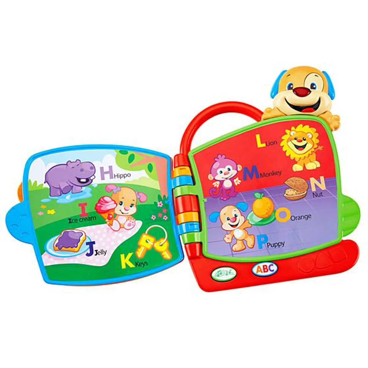 Con este perrito tu bebé aprenderá el abecedario con música, palabras y luces. presiona el botón del «ABC» para escuchar a Perrito leerle a tu bebé cada letra y nombre del objeto que empieza con la misma. El Libro ABC de Perrito es el perfecto primer libro del bebé; y un excelente repaso para los pequeños que iniciarán la escuela.