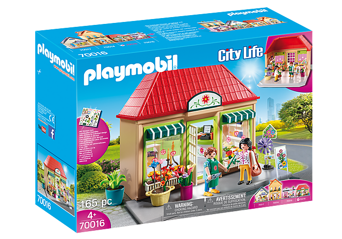Preciosas flores y decoraciones para tu pequeño pueblo están disponibles en tu Floristeria. Pegatinas para diseños individuales incluidas. Se puede combinar con 70014 Mi Casa de Ciudad, 70015 Mi Cafetería y 70017 Mi Tienda de Moda.