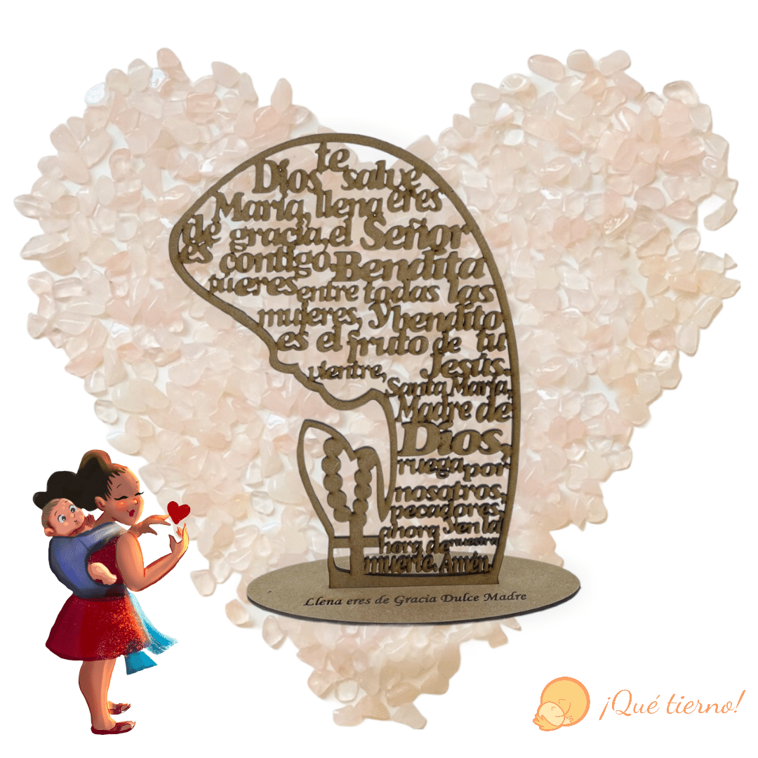 El que lleve incorporado el Ave María la hace especialmente interesante para el cuarto de los niños ya que les puede servir de recordatorio de una de las oraciones más importantes de la fe.