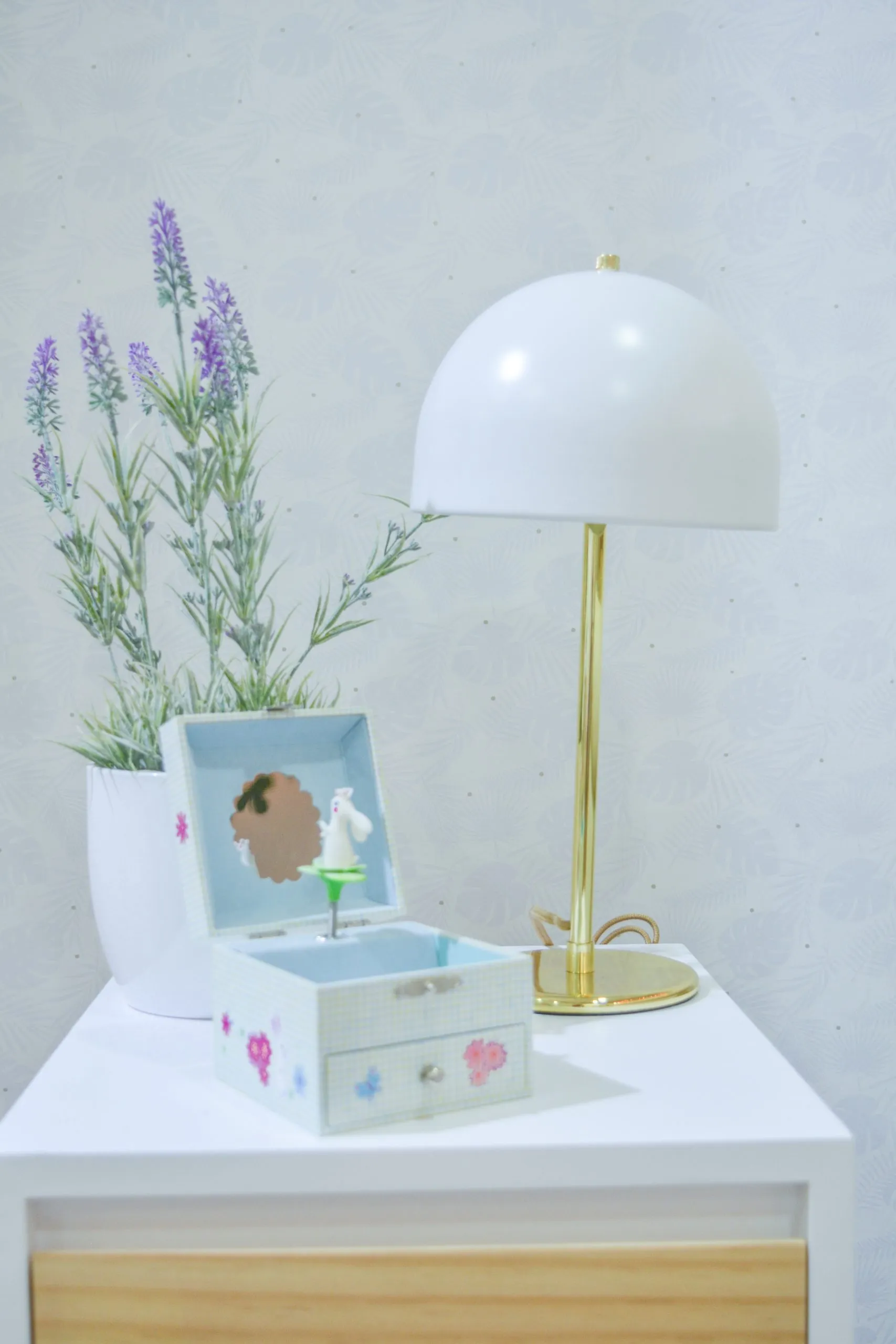 Nuestra lampara hongo le da un toque unico y especial a la habitacion de tu pequeño, tenemos diferenntes acabados diferentes acabados, gris, blanco, cobre o dorado.