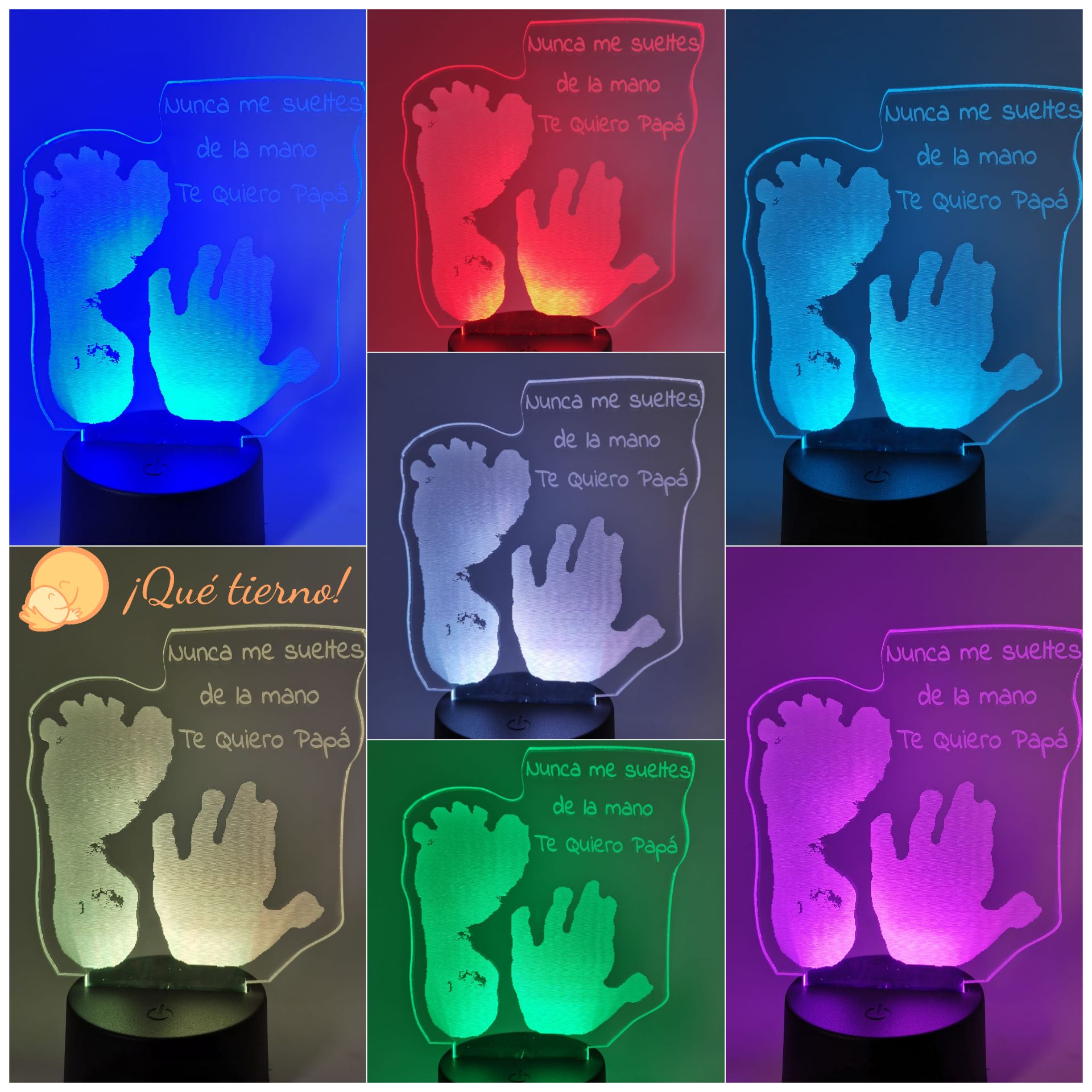 - Fotos Personalizadas: La lámpara con luz LED puede personalizarse con fotos de tus seres queridos, momentos especiales o lugares significativos. La foto se graba con laser en un panel de metacrilato.