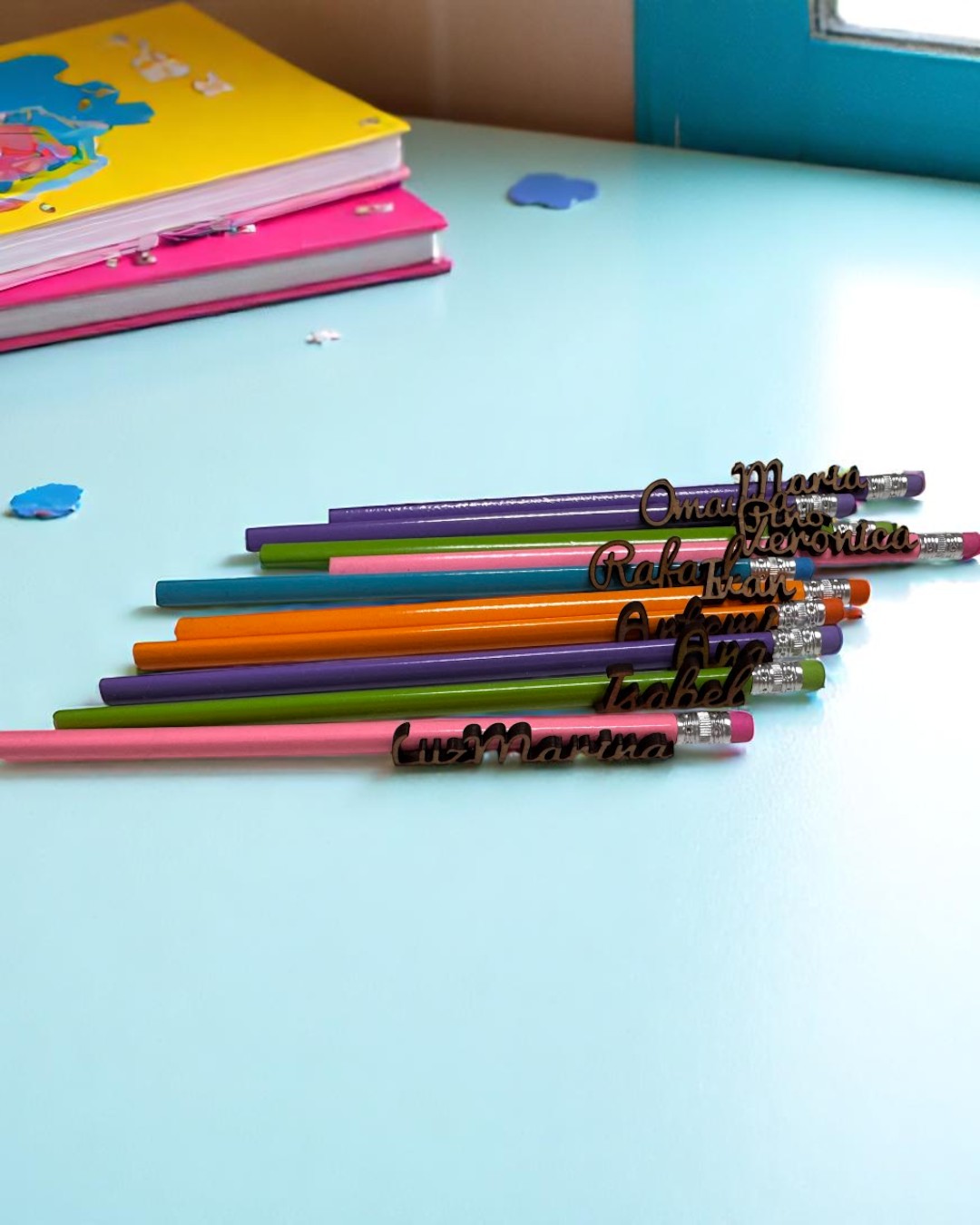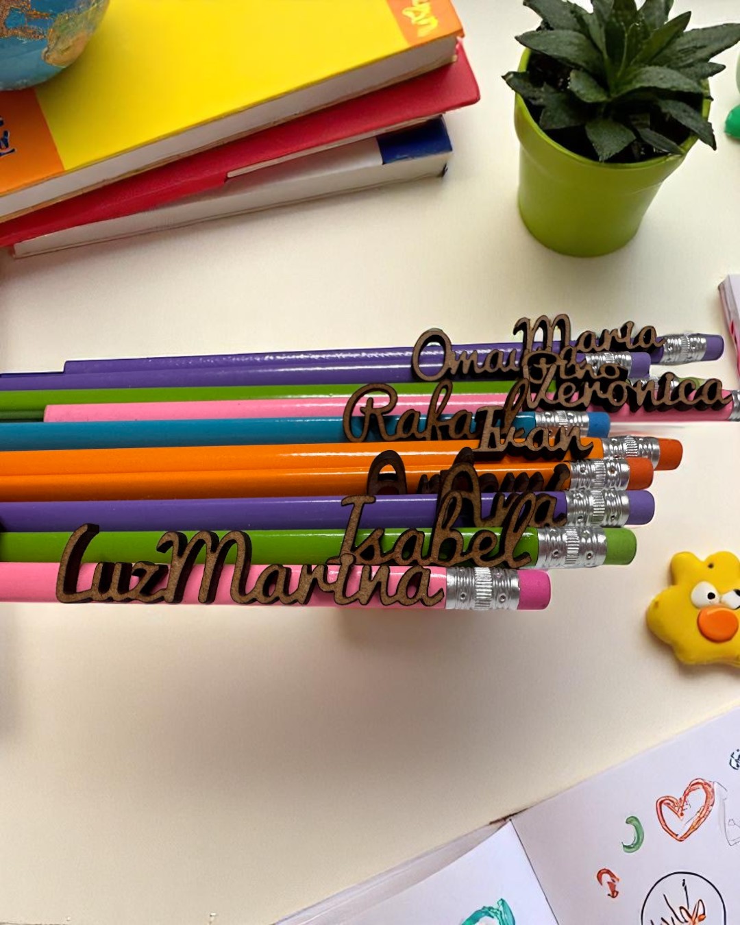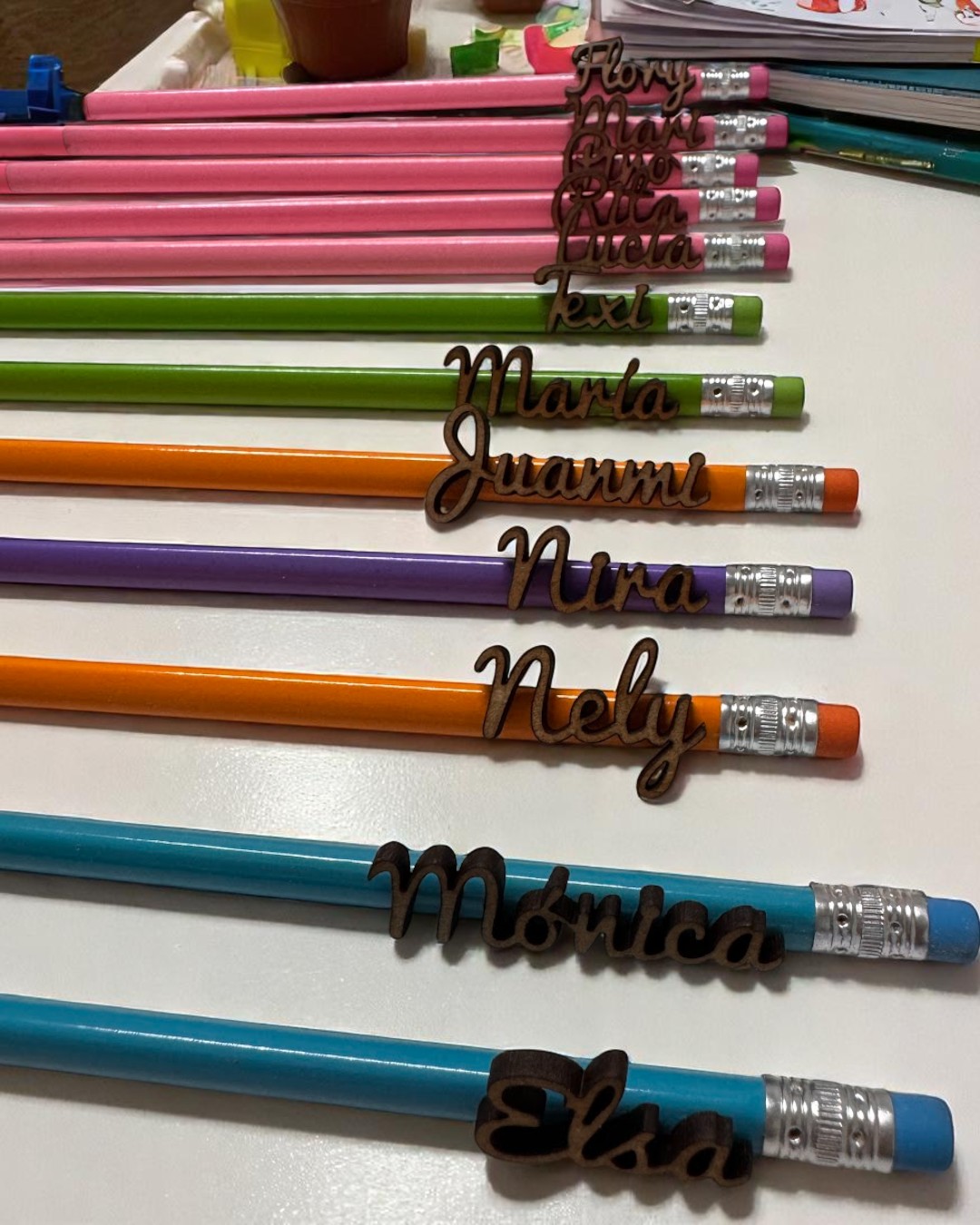 ¿Buscas un detalle útil, bonito y personalizado para un grupo de niños o estudiantes? Nuestros lápices con goma y nombre en madera son la opción ideal para sorprender y hacer sonreír. Un regalo funcional con un toque único y artesanal.