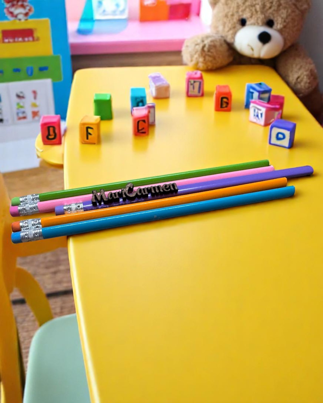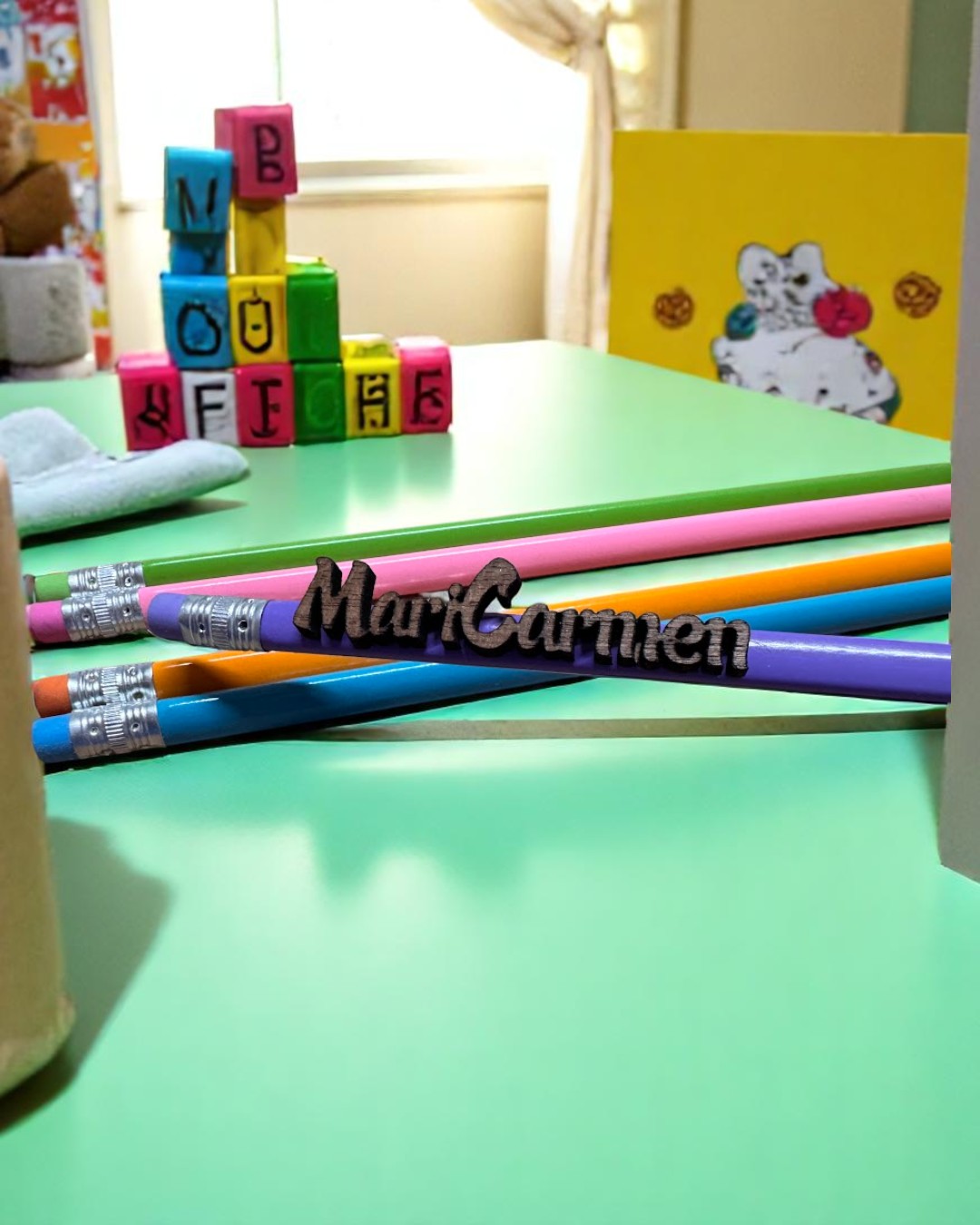 ✏️ Lápices de colores con goma y nombre en madera – ¡Personalizados y llenos de encanto!