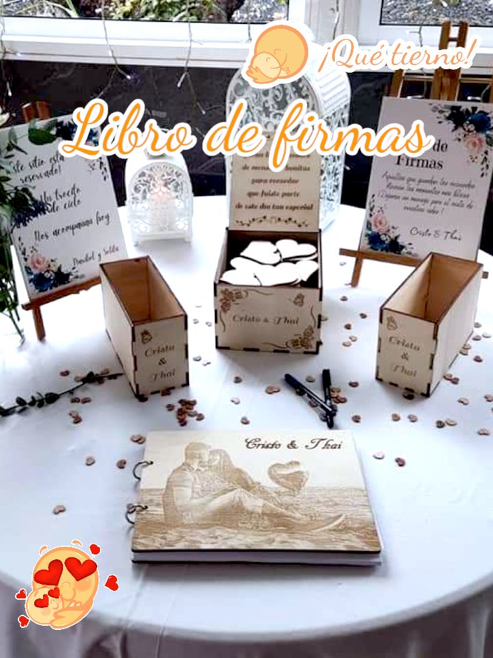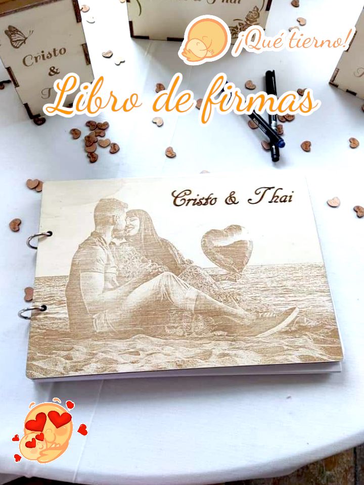 Los nombres podrán ir grabados, en relieve en madera de un color que hace contraste o metacrilato dándole un toque super elegante y brillante.