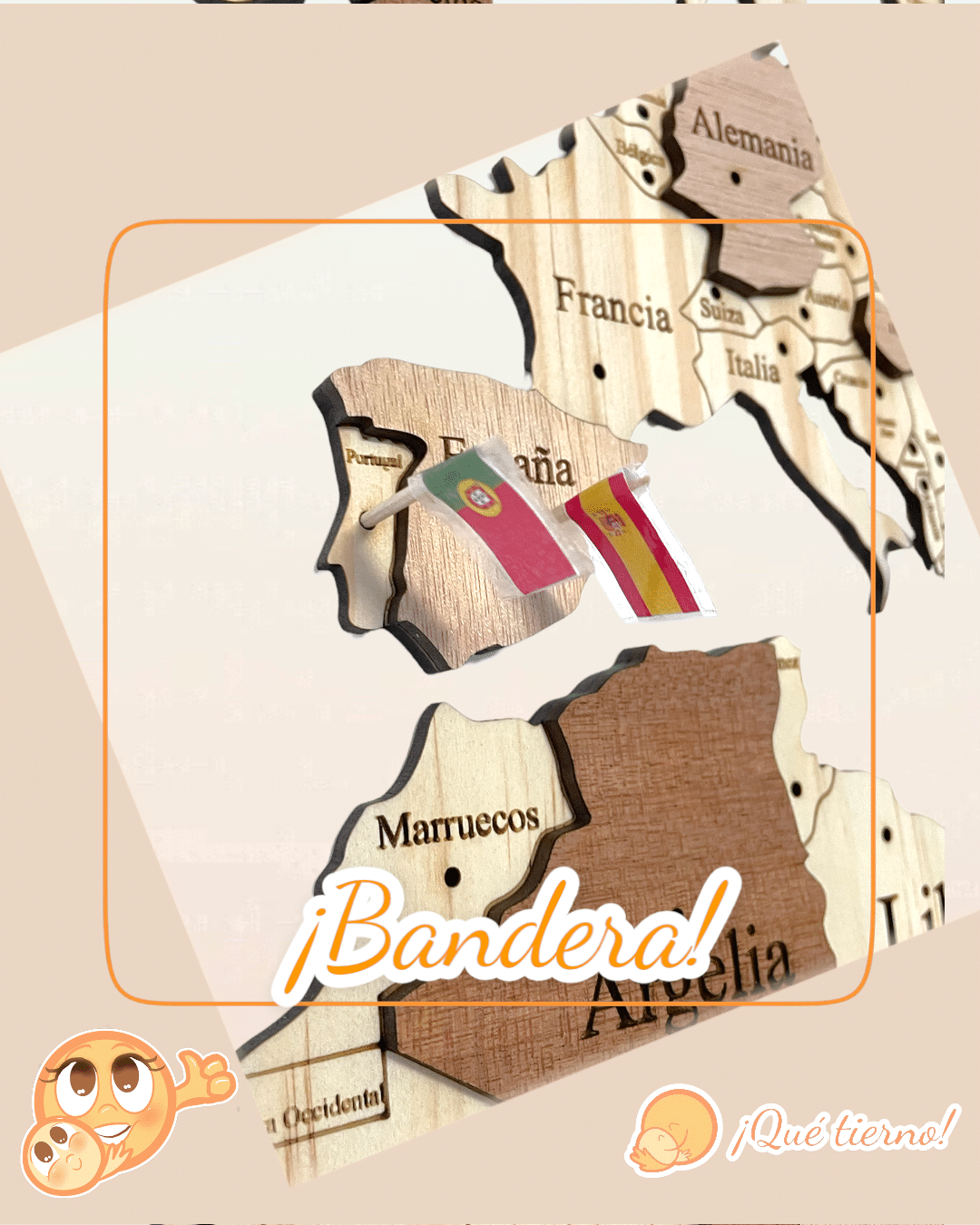 Mapa Mundi de madera en español