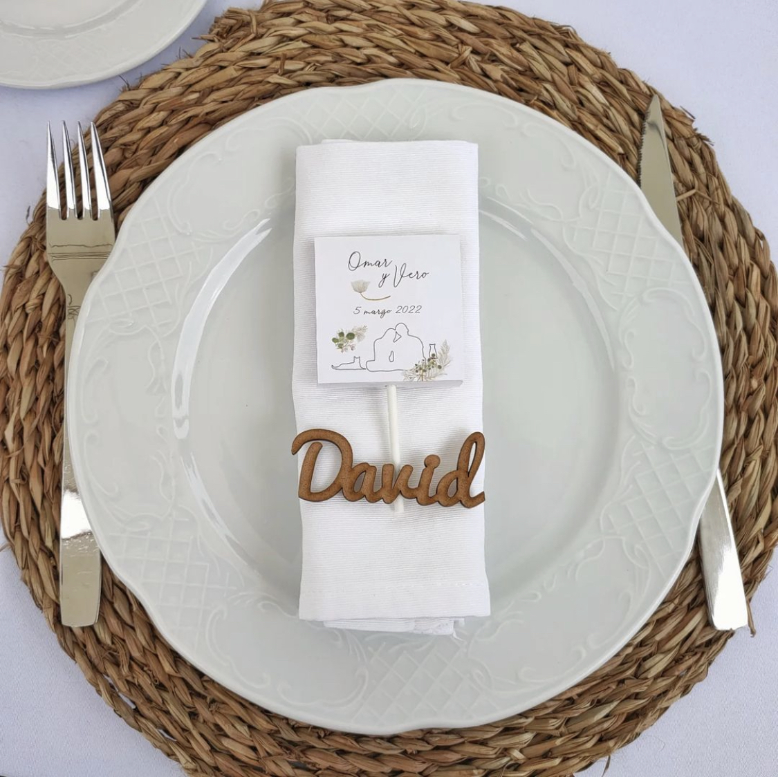 - Servilletero – Como extra se puede pedir un servilletero de fieltro con el nombre pegado (0,40)