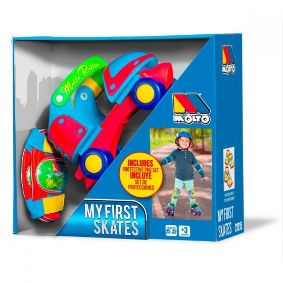 Patines 4 ruedas de iniciación para niños y niñas ajustables de la talla 25-32 con freno delantero y correa de cierre de seguridad.