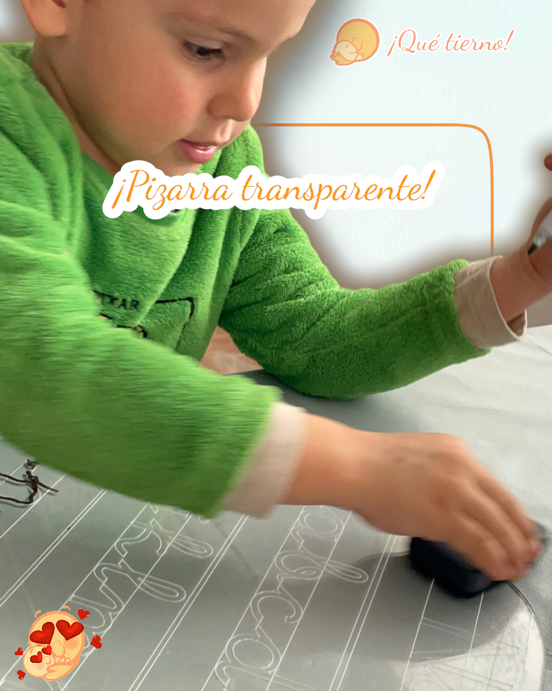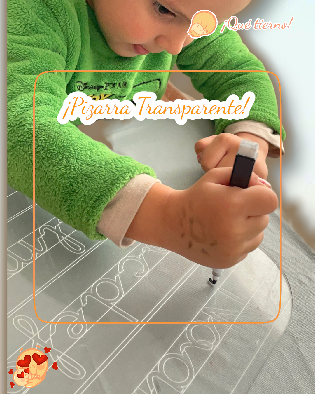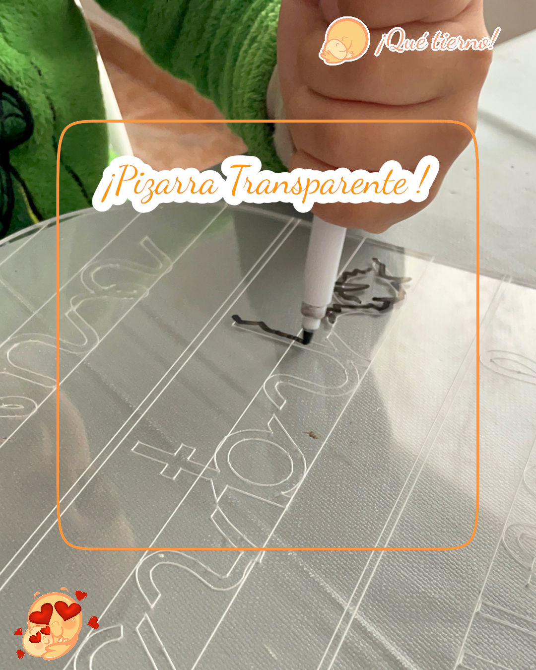 La transparencia del metacrilato permite que los niños vean tanto el contenido que se encuentra en la superficie de la pizarra como lo que está detrás de ella, lo que crea un efecto visual intrigante y estimulante.