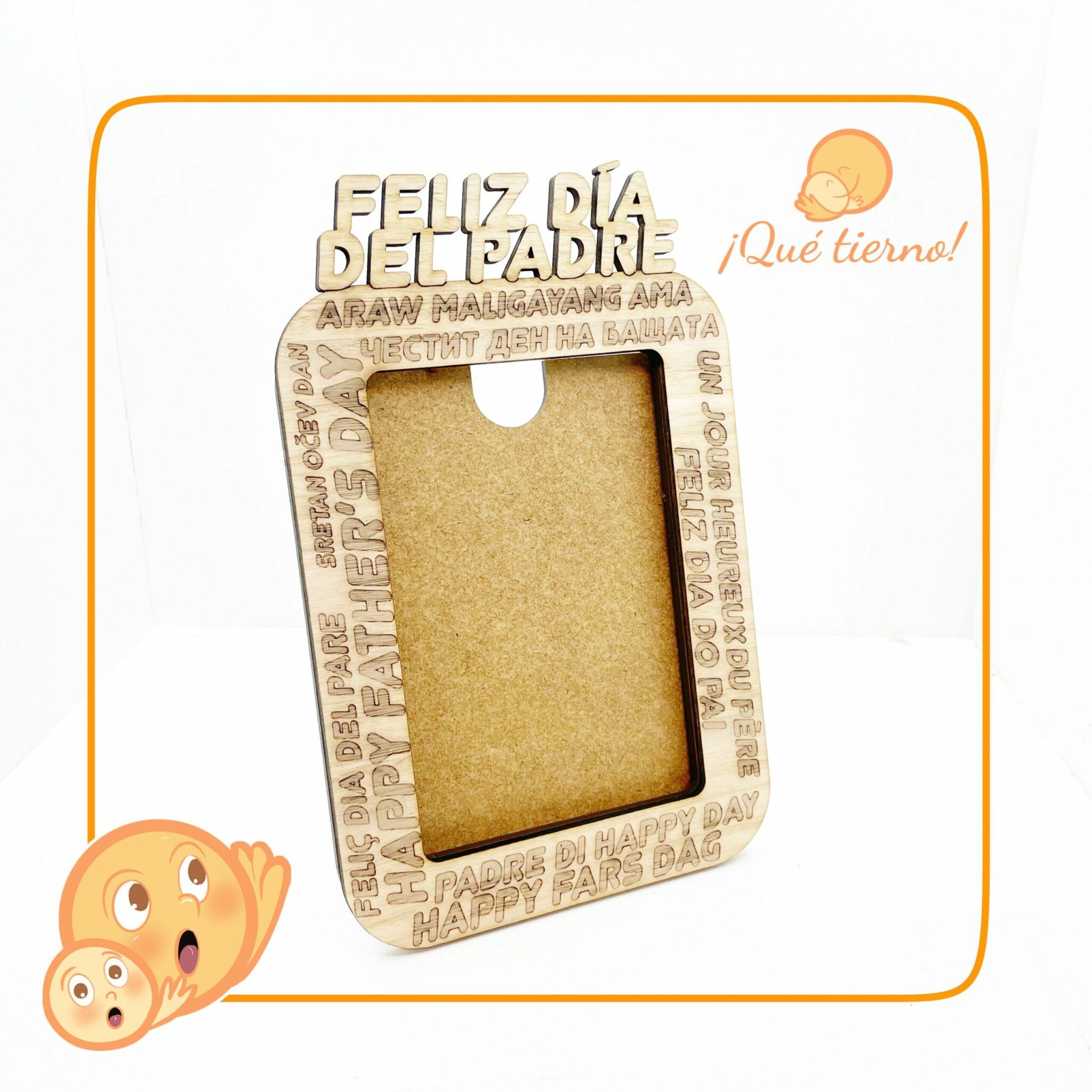 Portarretrato de madera para regalar a papá en muchísimos idiomas para felicitar el día del padre.