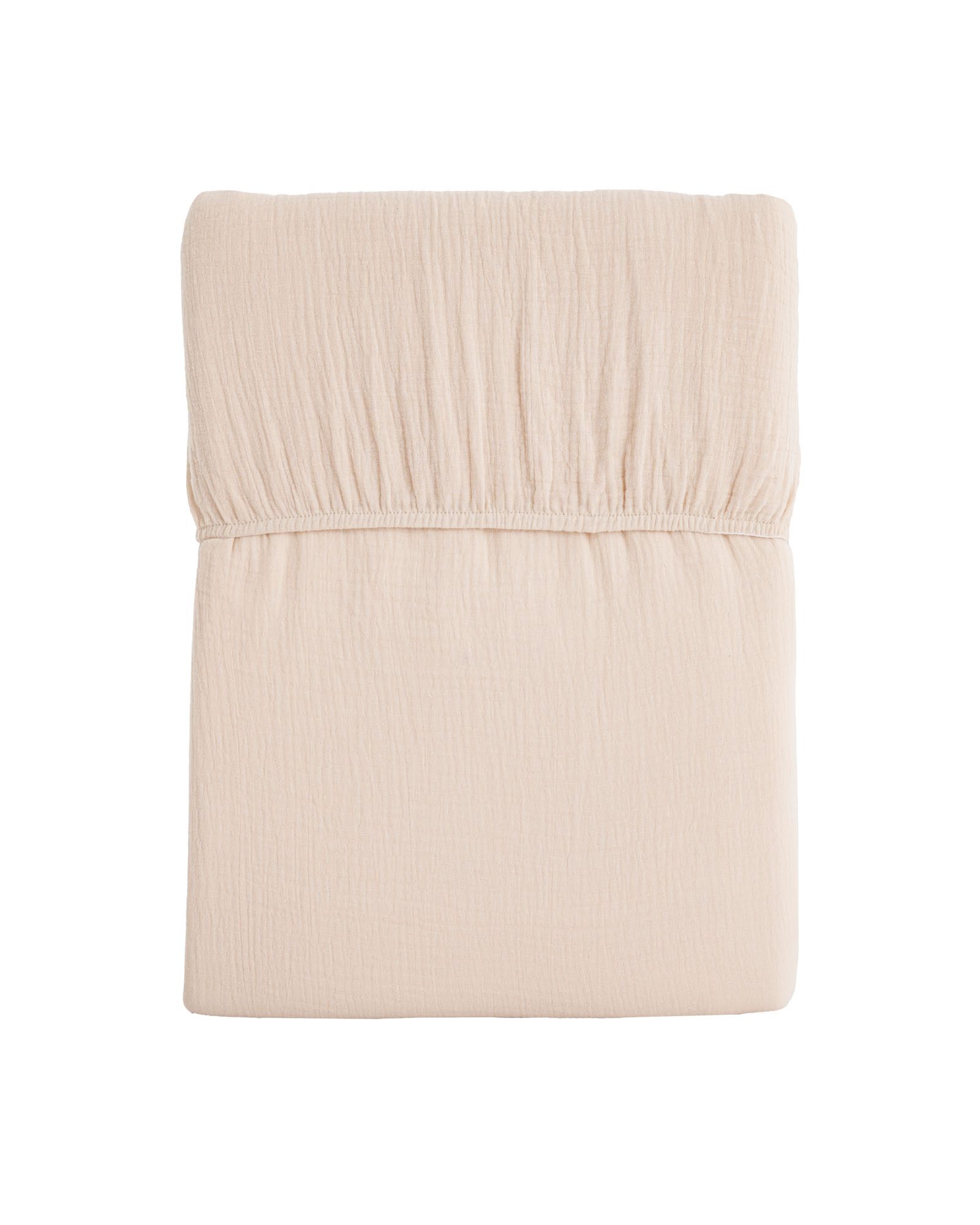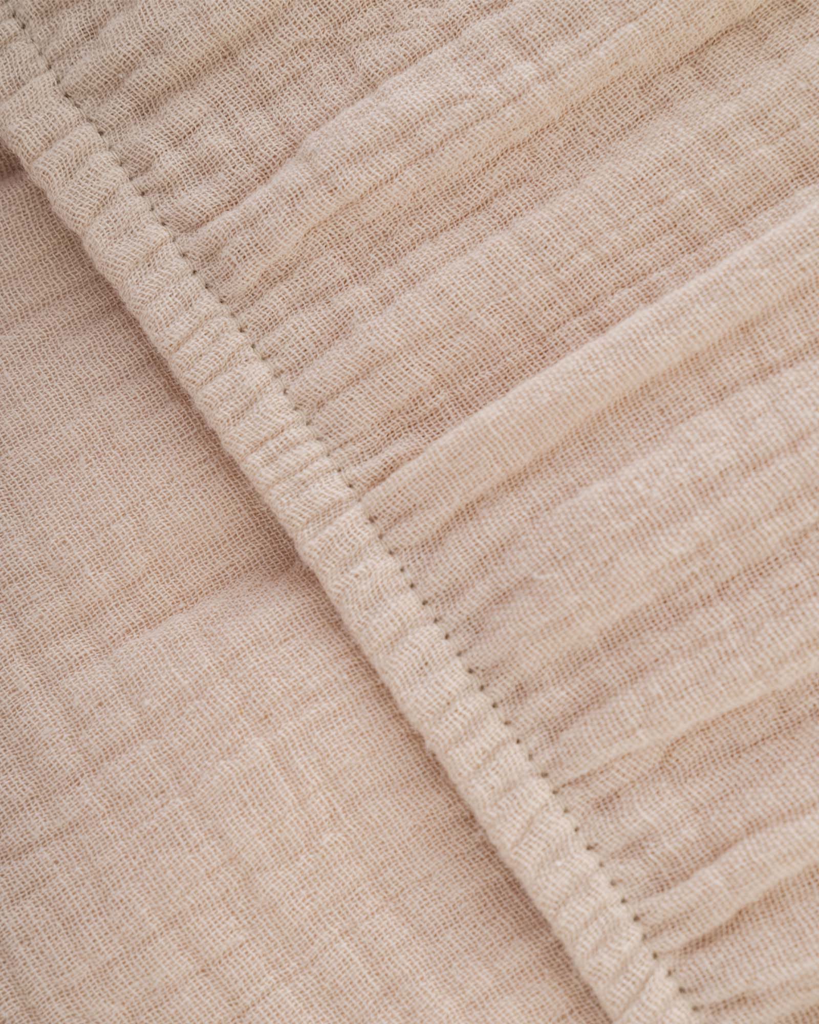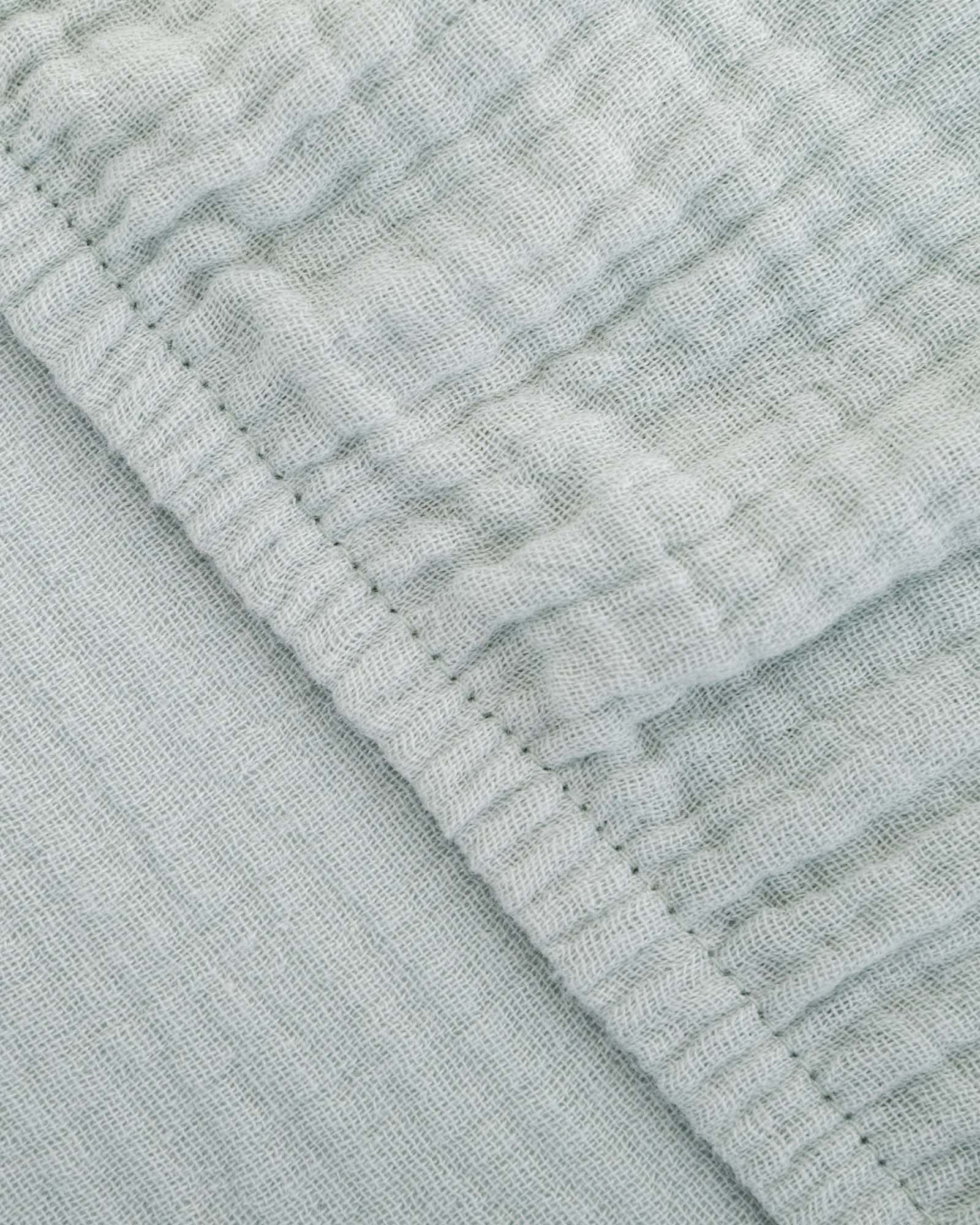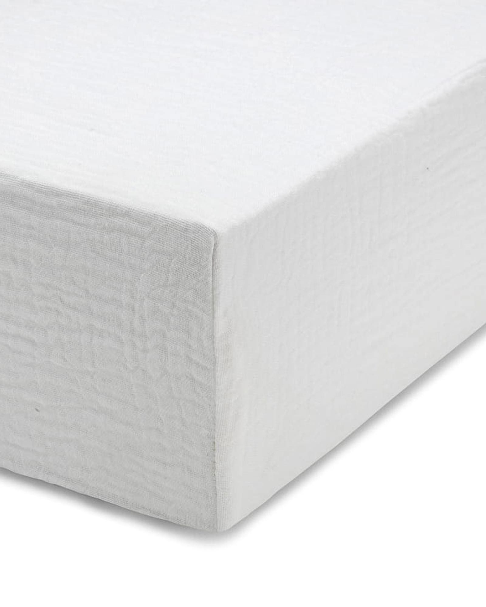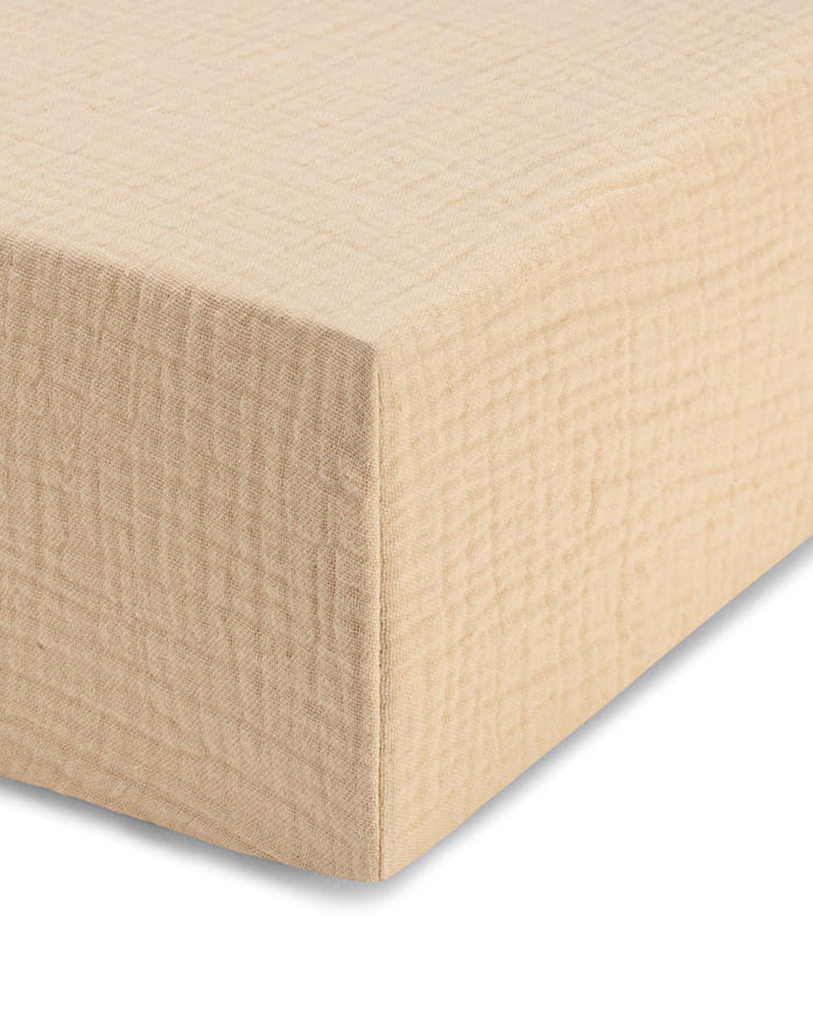 La muselina es un fino tejido de algodón que se caracteriza por su trama de fibras sueltas. Esto hace que las sábanas de muselina sean increíblemente ligeras y agradablemente suaves al tacto. El tejido es perfecto para pieles sensibles, ya que es 100% natural, transpirable y posee la certificación Oeko-Tex necesaria. También es fácil de mantener, ya que la sábana de muselina se seca muy rápidamente. Una banda elástica garantiza un ajuste perfecto al colchón y evita que el tejido se mueva.