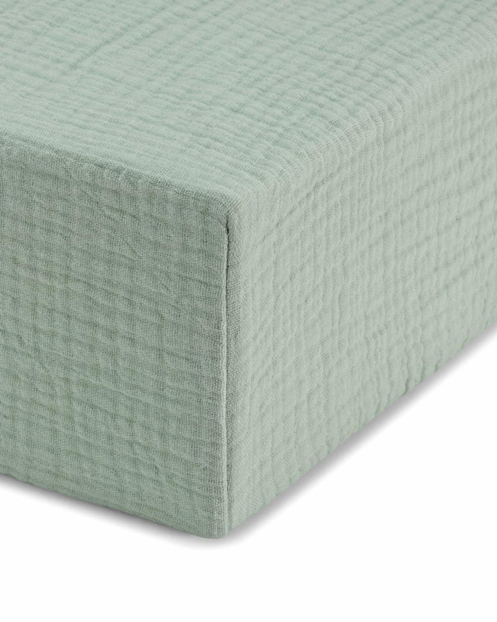 Nuestra sábana de muselina combina a la perfección con nuestros doseles y organizadores de colores lisos. Los cosemos exactamente en los mismos tonos.